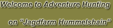 Jagdfarm Hummelshain is listed in all the major Search Engines under the following keywords: African Safaris, Trophy Hunting Namibia, African Hunting Safaris, Namibia Hunting Safari, Big Game Hunting, Safari Outfitters, Namibia Hunting Guide, Plains Game Hunt, Rifle Hunting, Bow Hunting, Bird Hunting, Rifle Import Requirements, Trophy Gallery, Top 10 Trophies , Namibia Professional Hunters, Safari Club Hunting Packages, Game Hunting Specials, Leopard Hunting, Cheetah Hunting